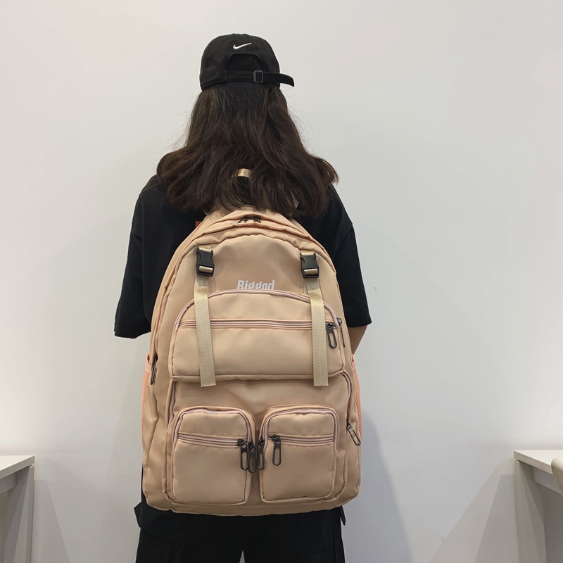 Solid schoolbag female Korean version of high school students male large-capacity junior high school students waterproof multi-pocket backpack travel backpack