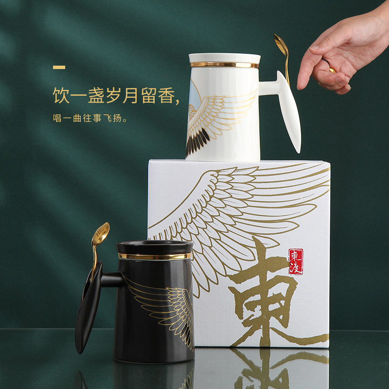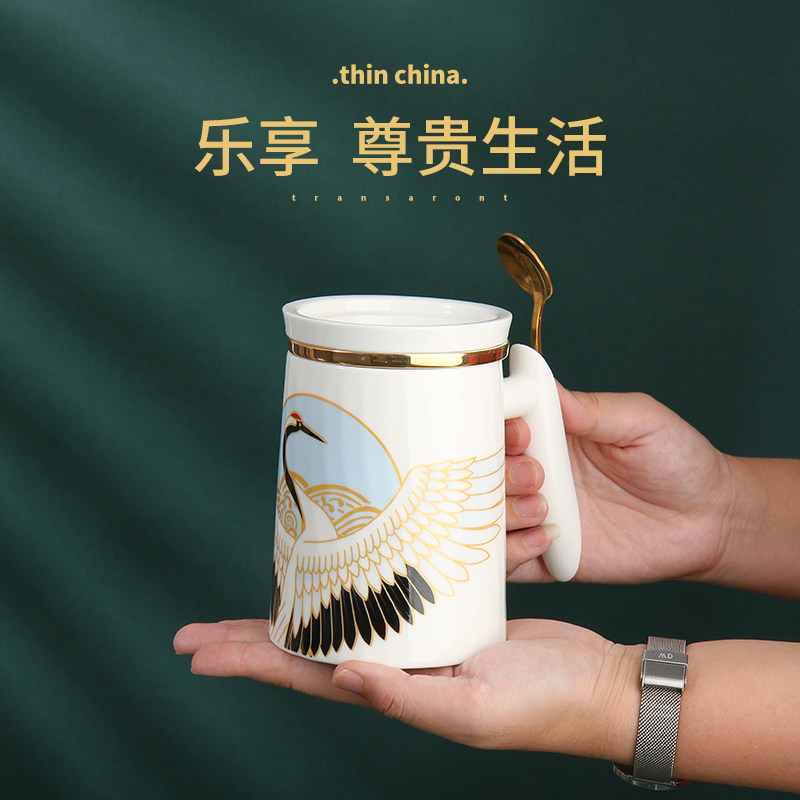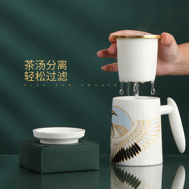Ceramic kung fu tea set tea cup set tea water separation men's high-end women's tea Chinese style mug with lid spoon