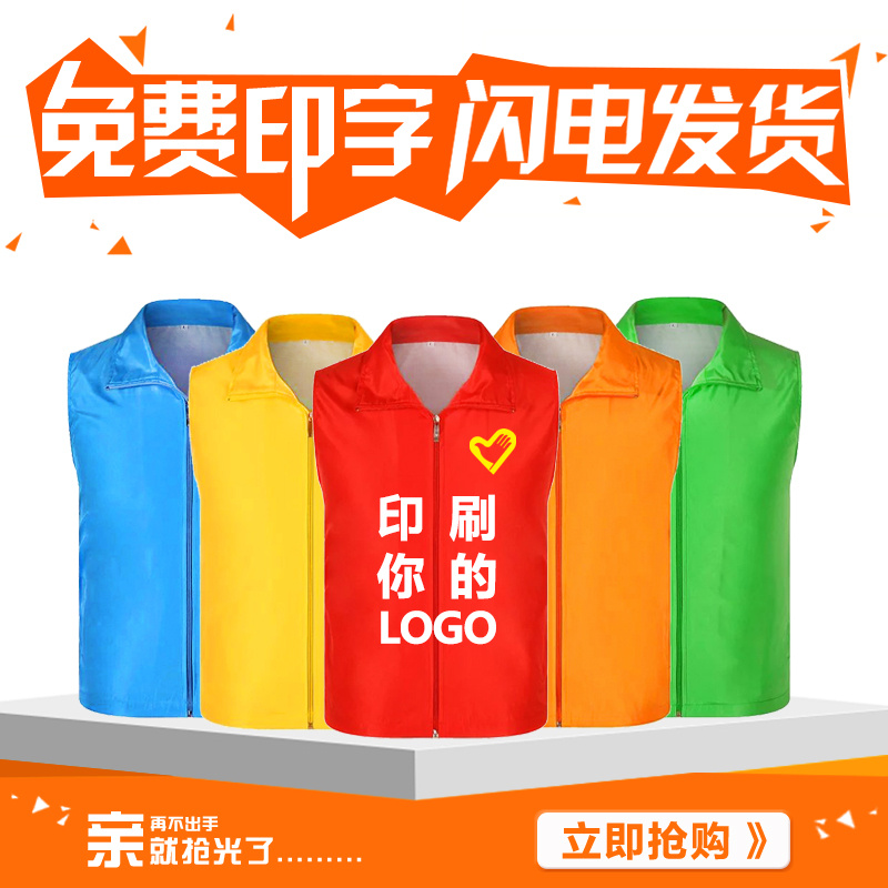 Vest red overalls lapel zipper advertising campaign public welfare printing logo volunteer volunteer money