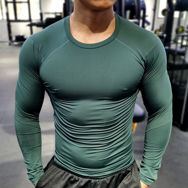 Tight Fit Men Fall Speed Dry Long Sleeves T-shirt High Bounce Breathable Perspiration Sweat Running Basketball Training Wear Sports Fitness Clothing