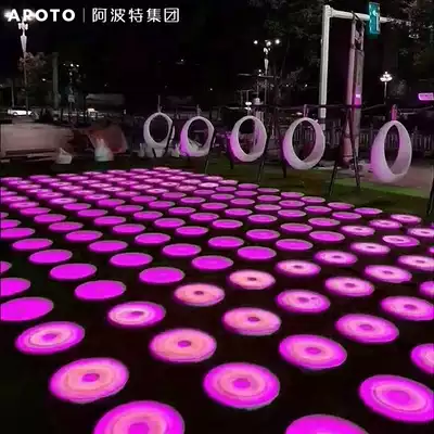 LED luminous induction horse racing ground brick lights colorful round Music floor lights rainbow springboard waterproof Net red light