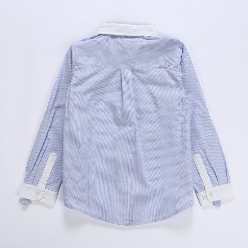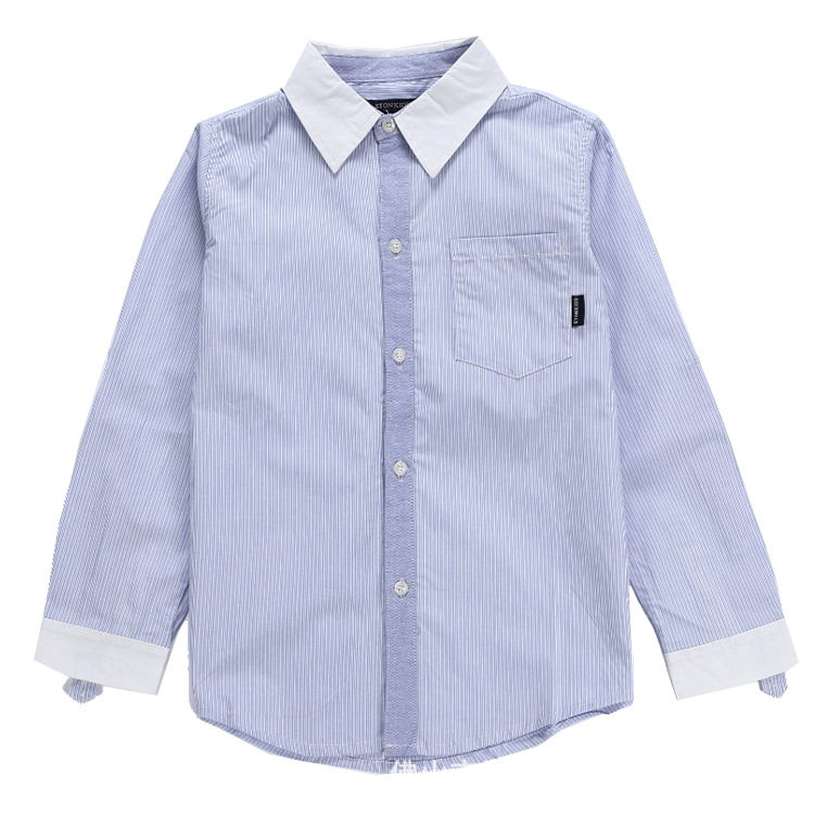 Children White Blue Fine Spaced Striped Shirt Boy Long Sleeve Pure Cotton CUHK Coupe for primary and middle school students Uniforms Shirts