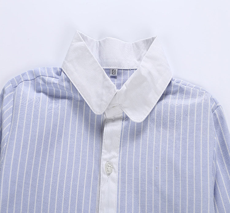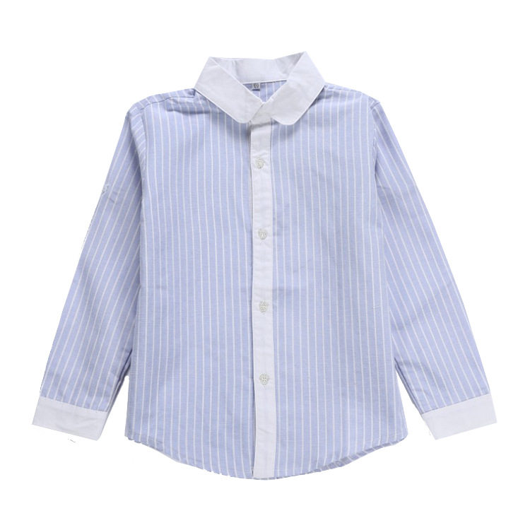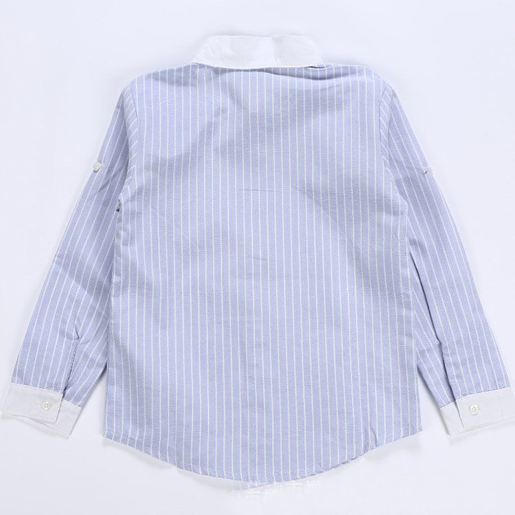 Kindergarten boys and girls long sleeve base blue white bar shirt primary school uniform summer casual shirt