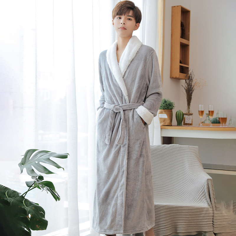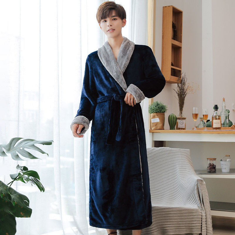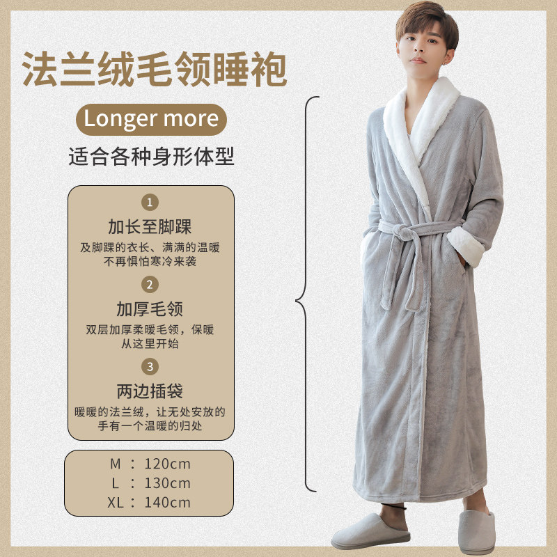 Sleepwear men's bathrobes autumn winter flannel Coral suede sleeping robes thickened with velvety lengthening of autumn and winter models to increase the fattening