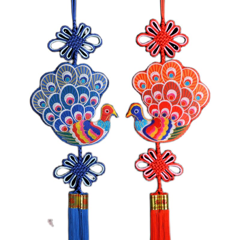 Pendant home accessories living room decoration embroidery peacock open screen indoor room corridor entrance Chinese knot hanging jewelry