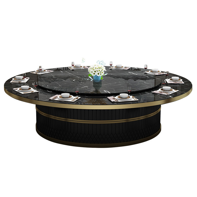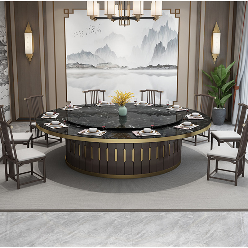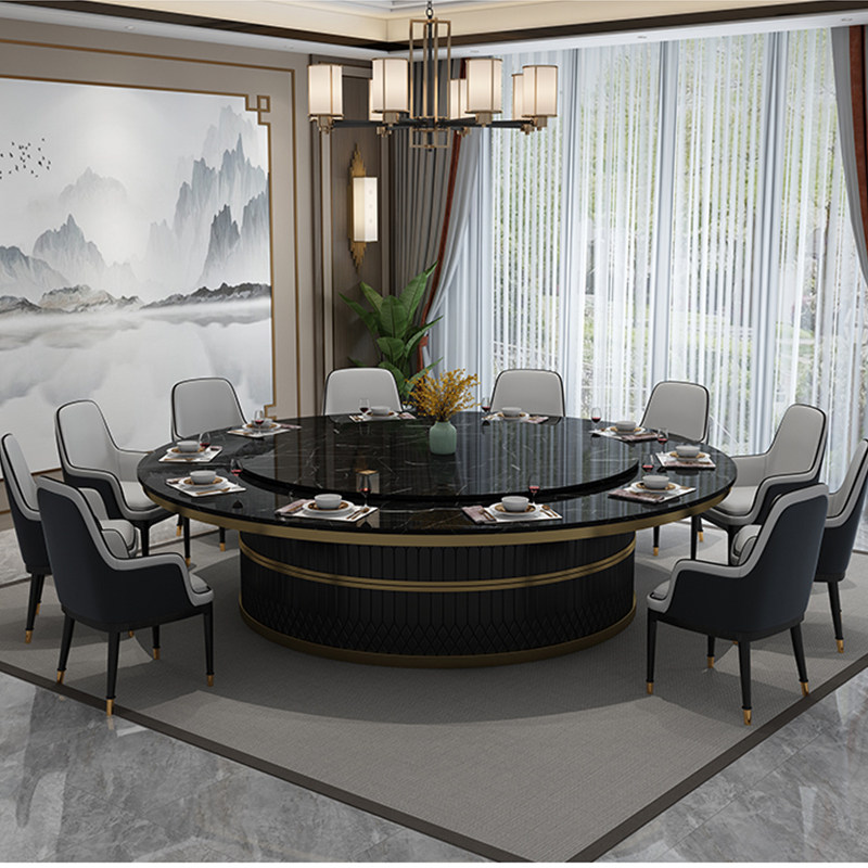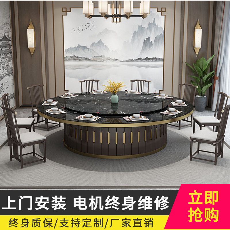 New hotel electric dining table Large round table automatic turntable Solid wood hot pot table and chair combination 15 people 20 hotel round table