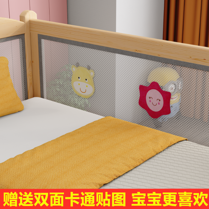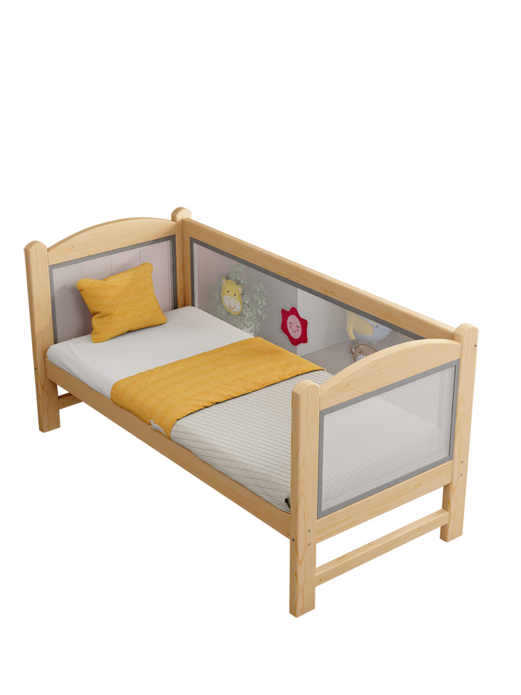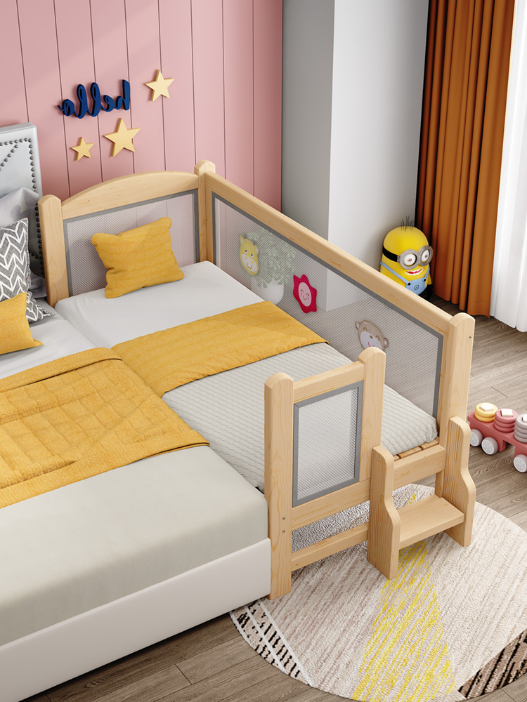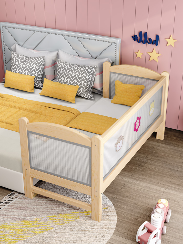 Can be customized solid wood children's mesh splicing bed plus high guardrail boy and girl baby Yanbian bed large bed widened bed