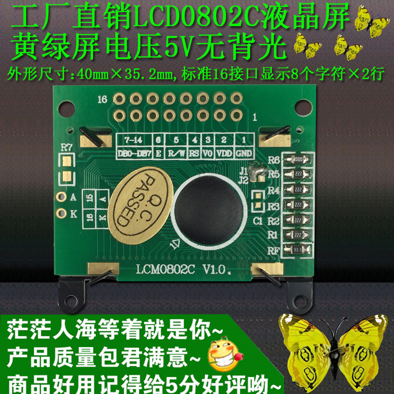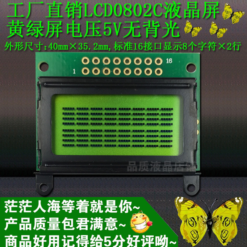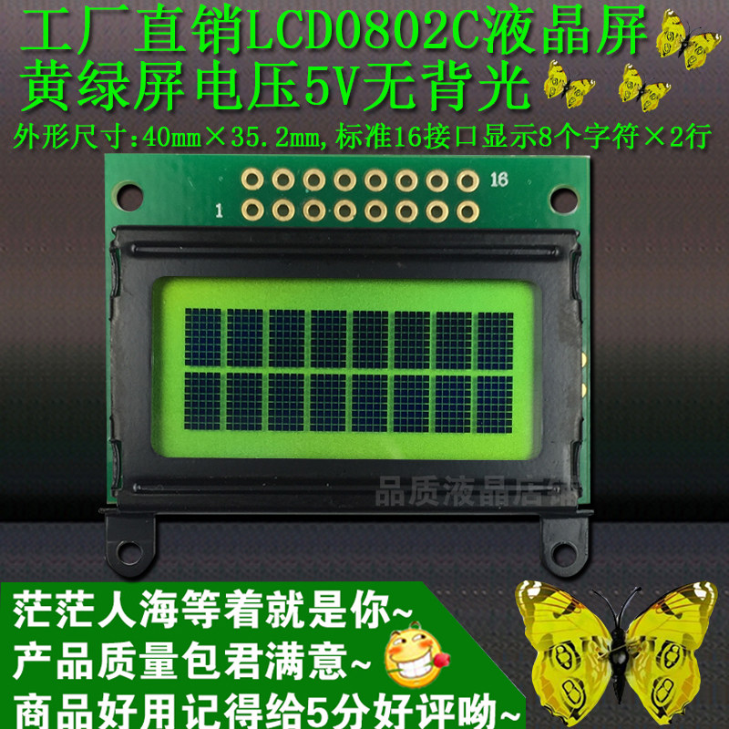 High quality LCD0802C LCM0802 LCD display module yellow green screen without backlight big promotion