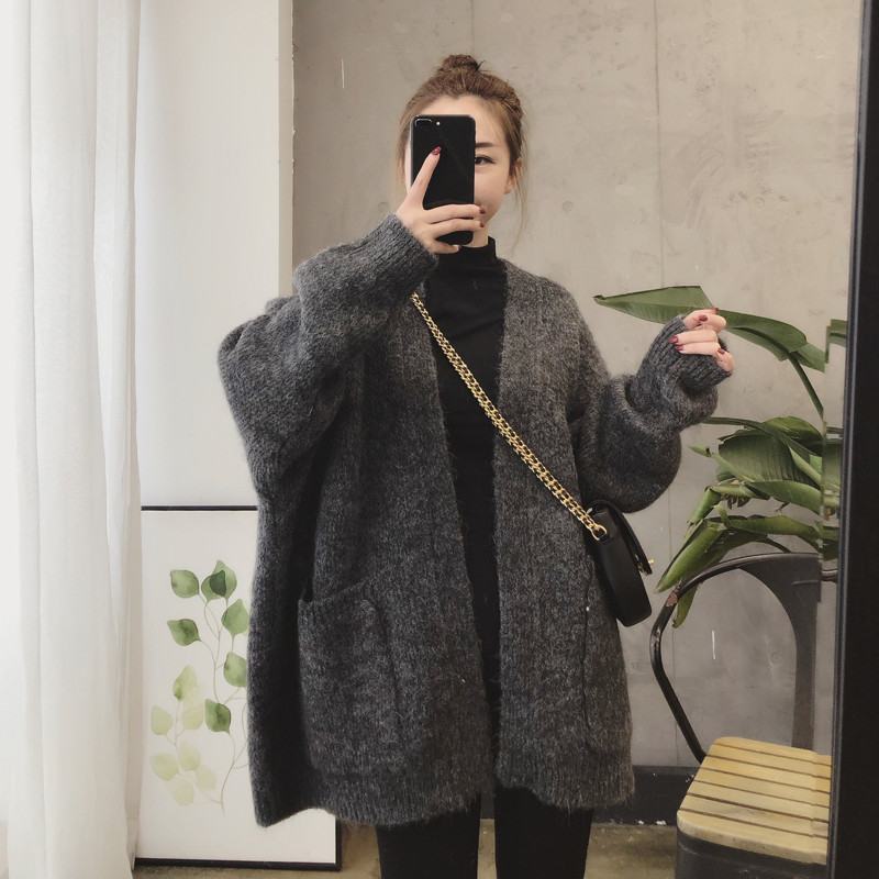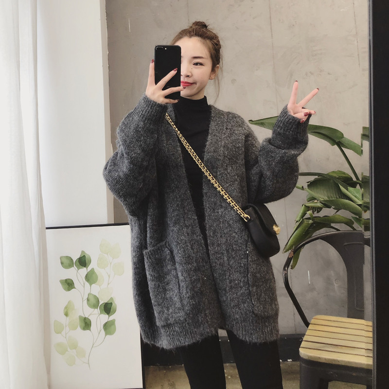 Sweater women's loose wear autumn and winter lazy thick coat medium and long version of Japanese retro cardigan wild sweater