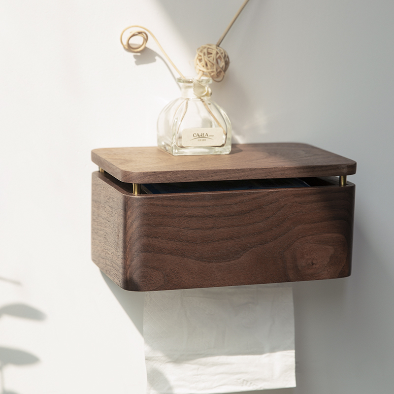 Toilet paper box wall hanging toilet paper box paper towel toilet paper rack toilet household punch-free storage rack wood