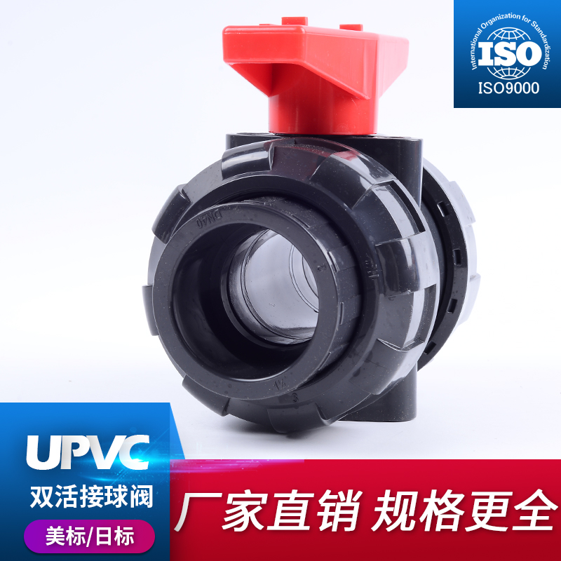 UPVC Ball Valve Double Live American Day Label SCH80 Water pipe valve Inmanufactured PVC pipe switch Manual DIN1 2 inches