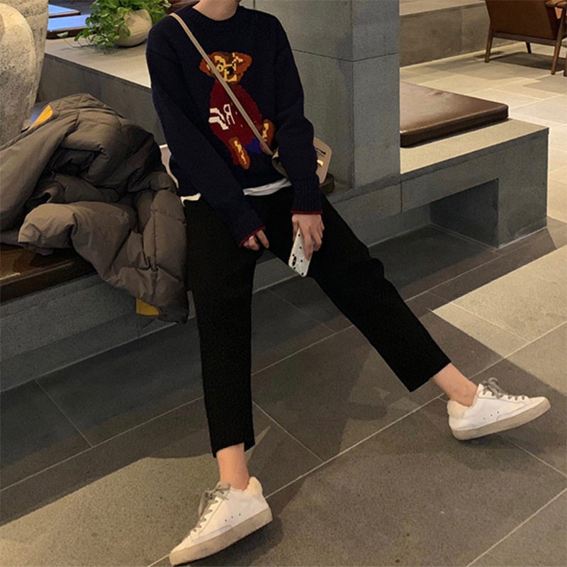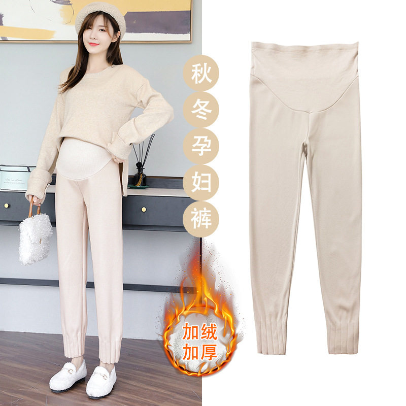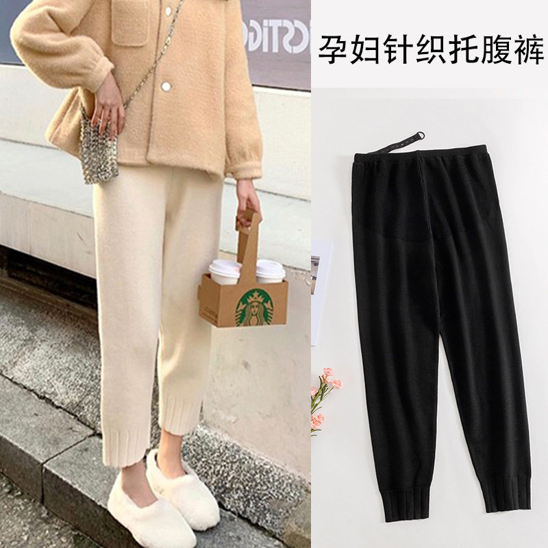 Pregnant women's pants autumn outerwear knitted nine-point radish pants foreign style fashion maternity clothes net red belly granny pants