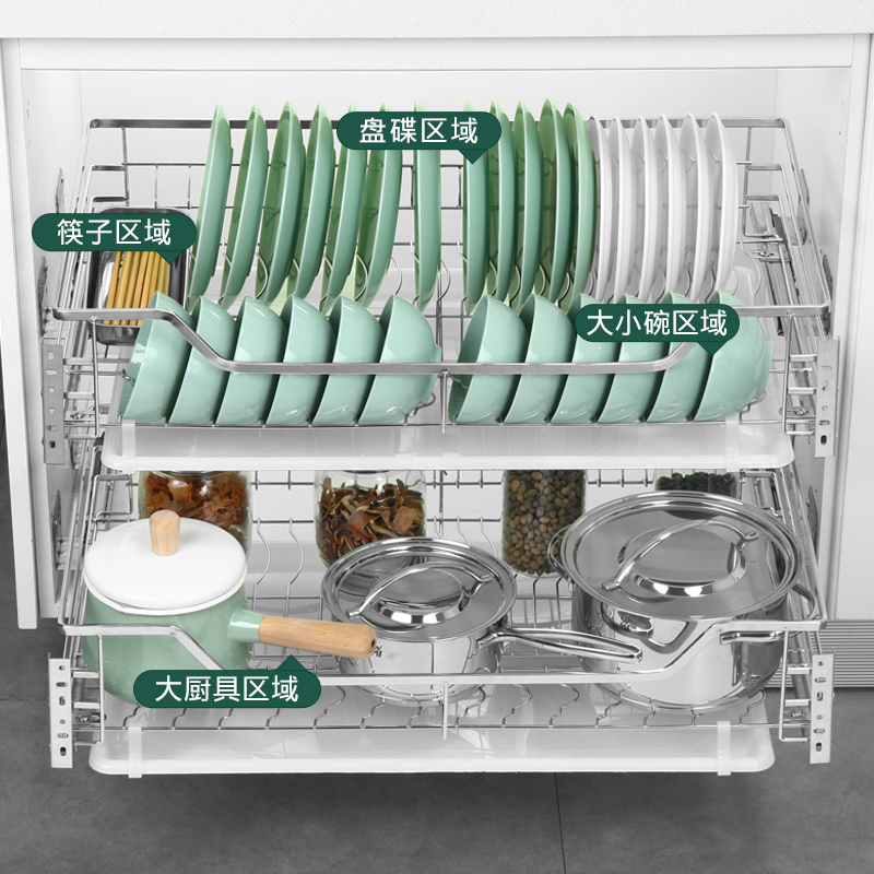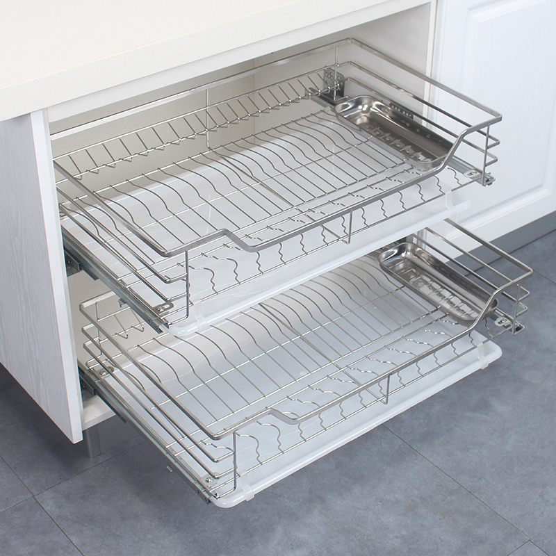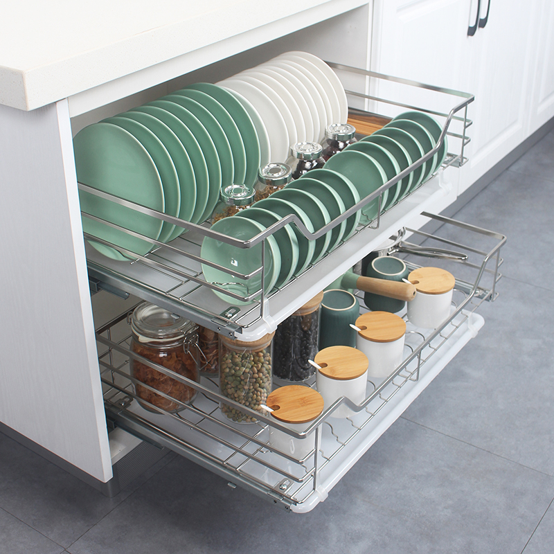 Single layer pull basket 304 stainless steel kitchen overall cabinet drawer type dish basket buffer rail?Car seasoning basket rack