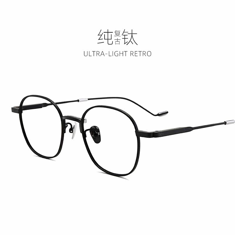 Ultra-light pure titanium glasses frame frame men can be equipped with lenses high myopia retro square frame small frame women