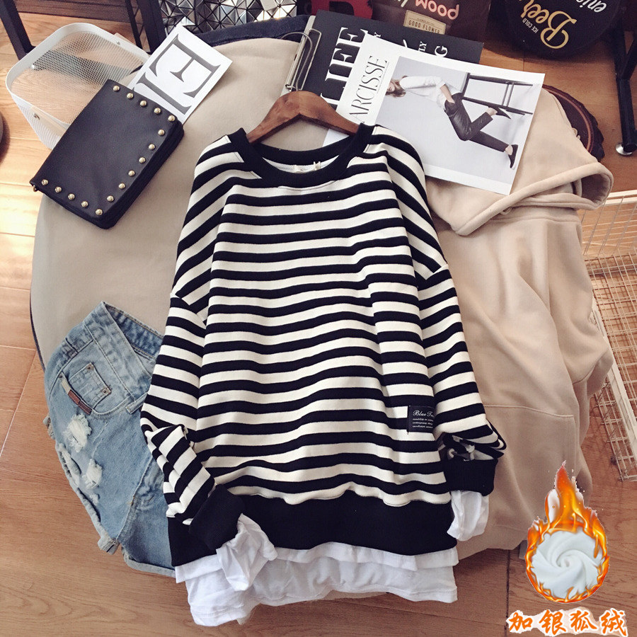 Maternity top t-shirt medium long maternity sweatshirt long sleeve cotton spring and autumn dress loose Korean version outside wear autumn and winter plus velvet