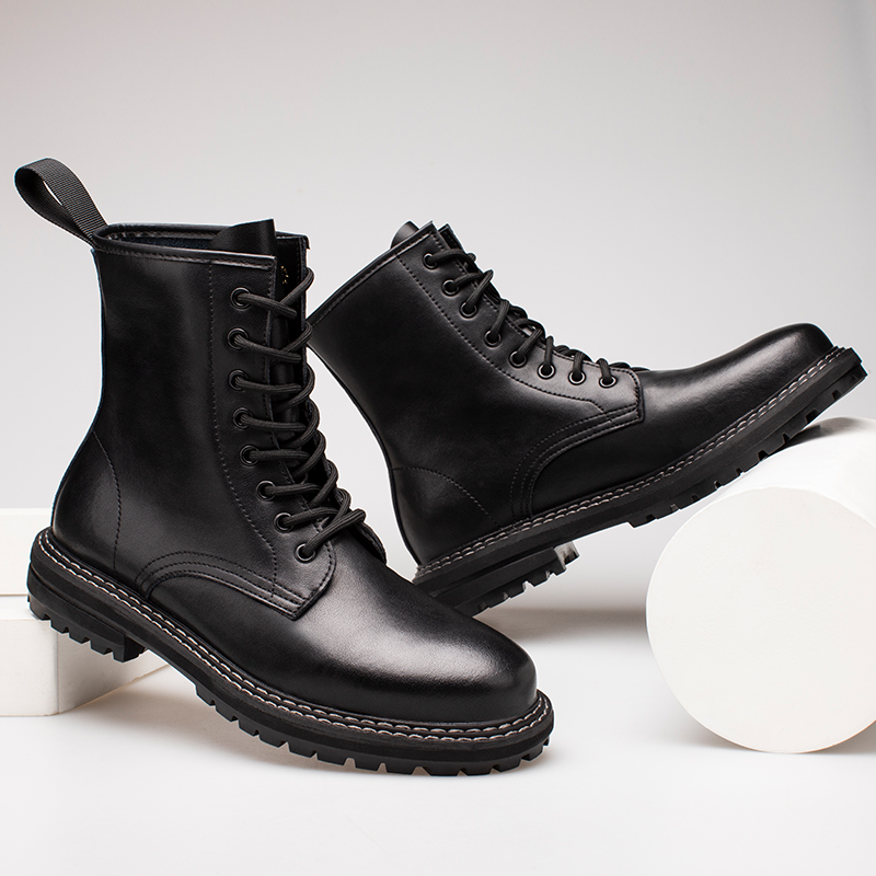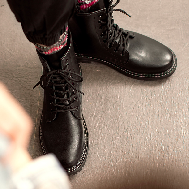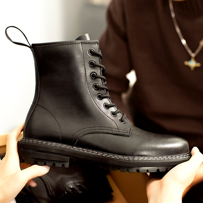 Martin boot male high cylinder Inlenty wind tooling boot genuine leather black plus suede warm Korean version Trend 100 lap cotton shoes man