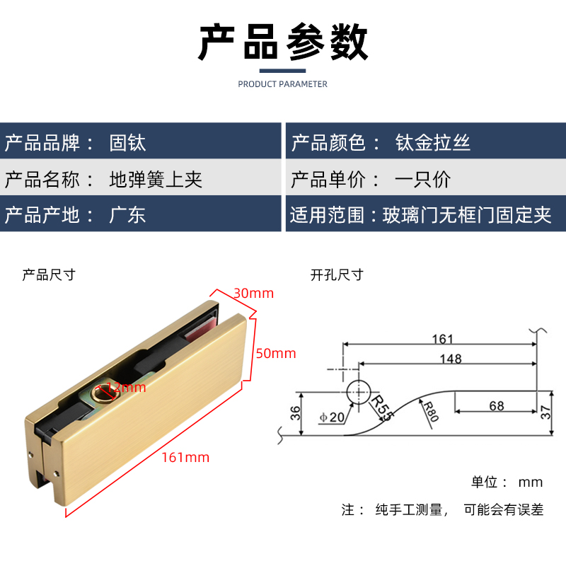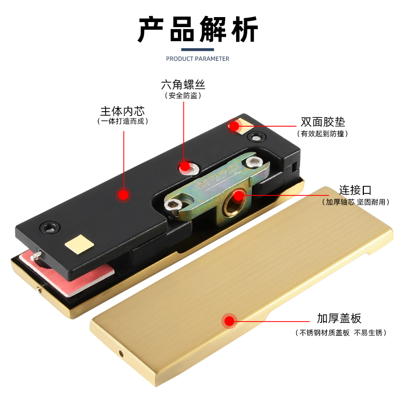 Solid titanium frameless glass door clamp floor spring door clip accessories titanium gold word clip ground bullet door glass small door clip