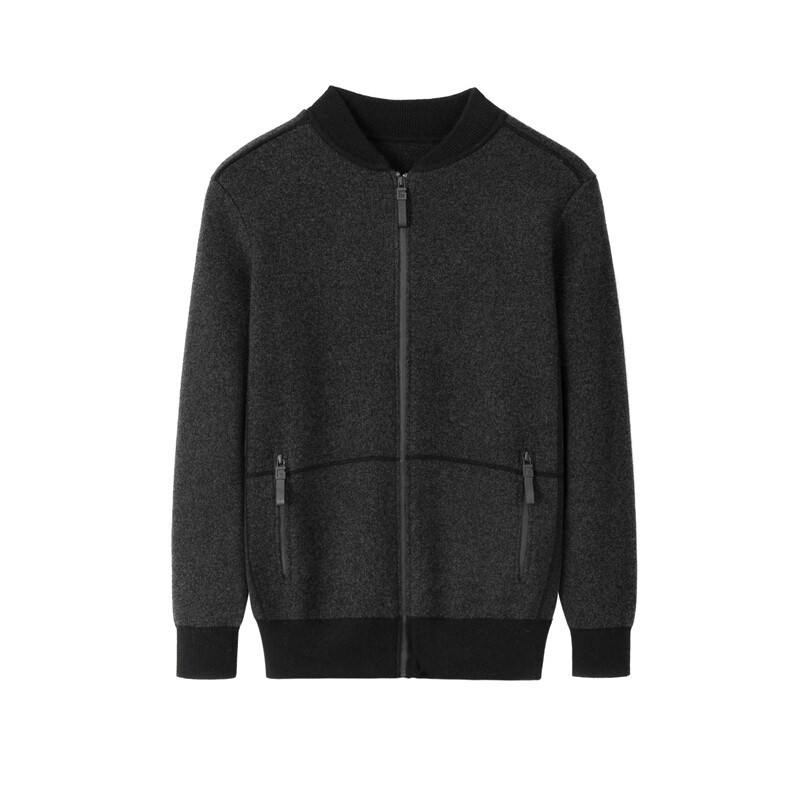 Fu Xianglin's production from Ordos city 100% Mountain cashmere semi-high collar dark pull chain thickened male cardiff pure cashmere