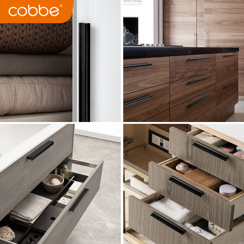 Cabe wardrobe door handle modern simple European extended aluminum alloy Nordic black cabinet cabinet drawer handle