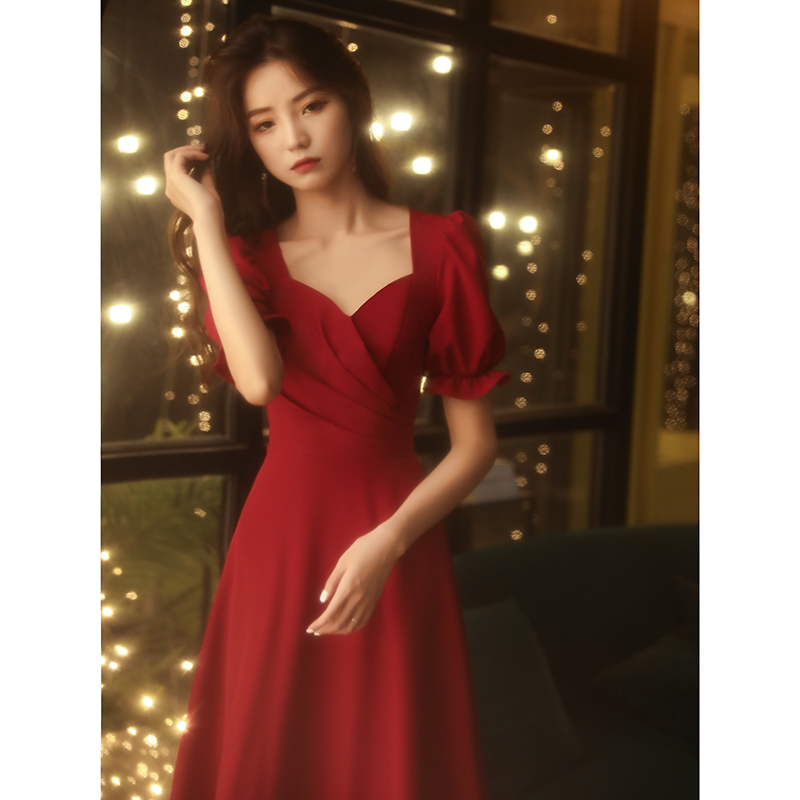 Toast brides can usually wear summer wine red engagement dress female summer home dress is skinny long
