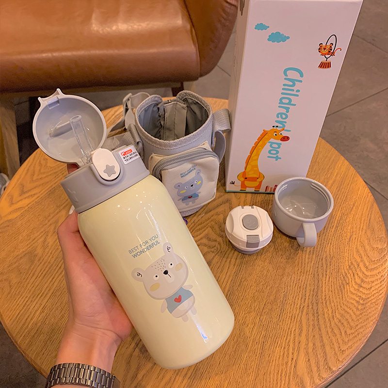Thermos cup children's straw cup children's water cup dual-purpose primary school students anti-fall kindergarten kettle out to carry girls