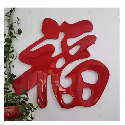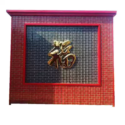 Customized stainless steel wall Wall Dafu character rural Yingfu shadow back wall red Fu 80 meter metal titanium alloy blessing word