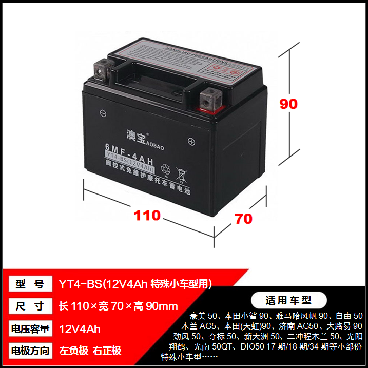 YTX4L-BS Locomotive Dry battery New Continent Honda 50 Free 110 Float Pleasant Wood Lan AG50 Accumulator