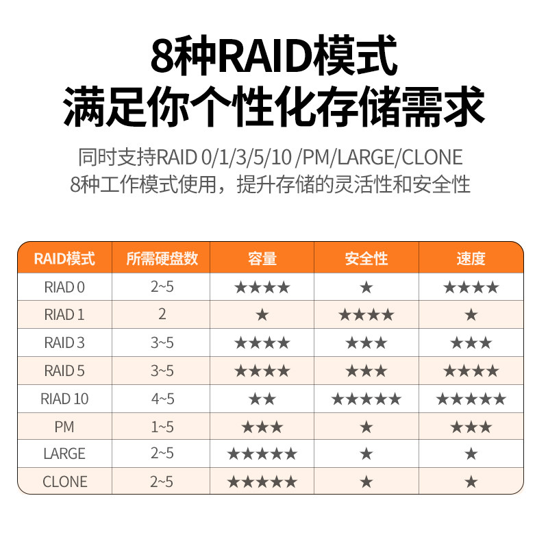 5-bay array cabinet ★8 RAID mode ★90TB massive expansion