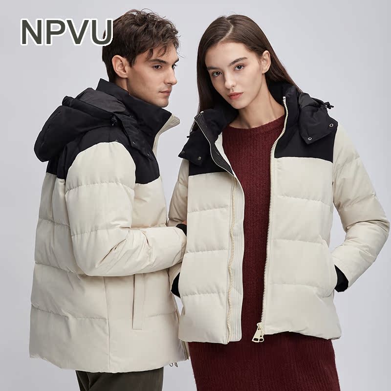 NPVU Outdoor Winter Down Clothing Male and female jacket Even cap loose Short-style white duck suede warm and cold-resistant down clothing tide