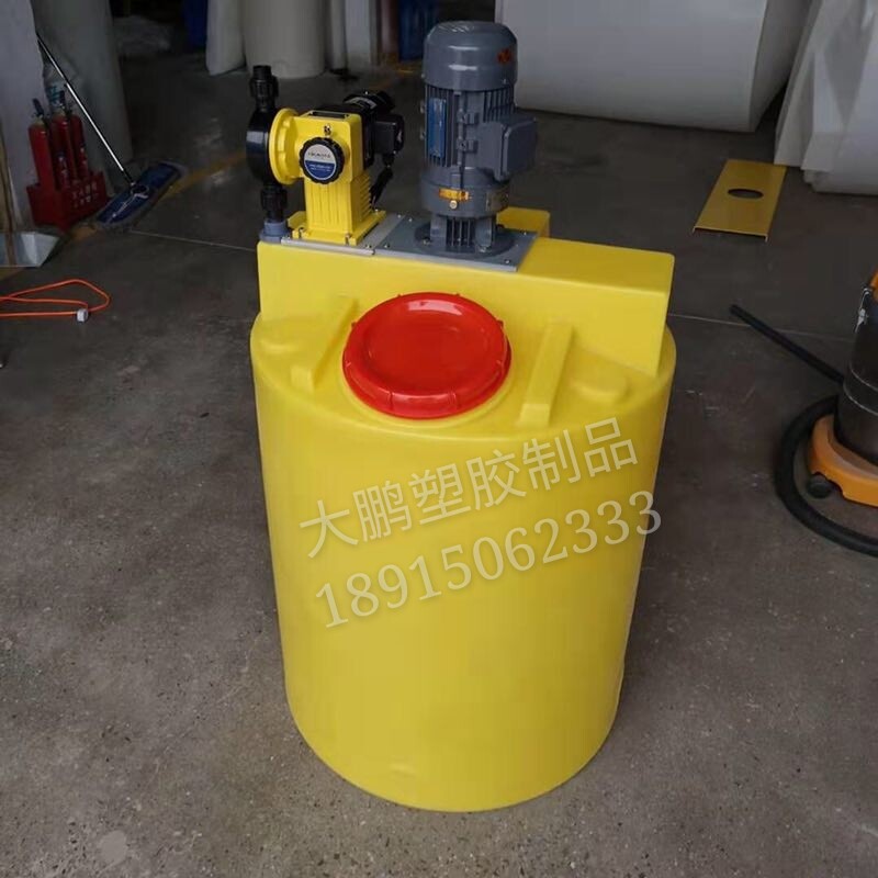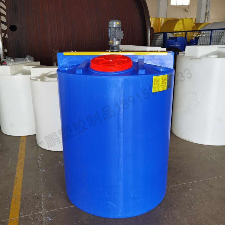 PE plastic mixing bucket with motor dosing box acid-base medicament PAMPAC chemical sewage water and fertilizer dissolving cone bottom tank