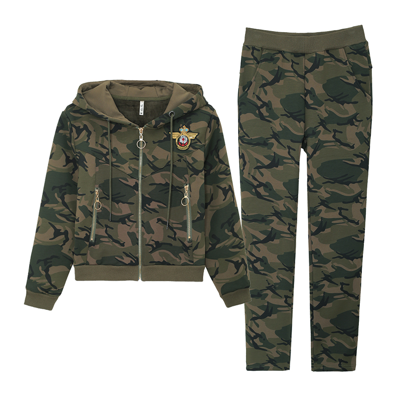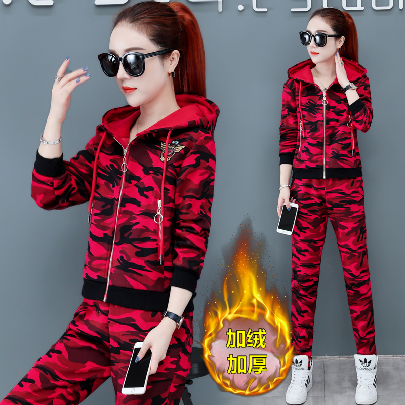 Camouflage suit women's trendy autumn and winter plus velvet thickening casual sportswear two-piece fashion Western style loose large size winter clothes