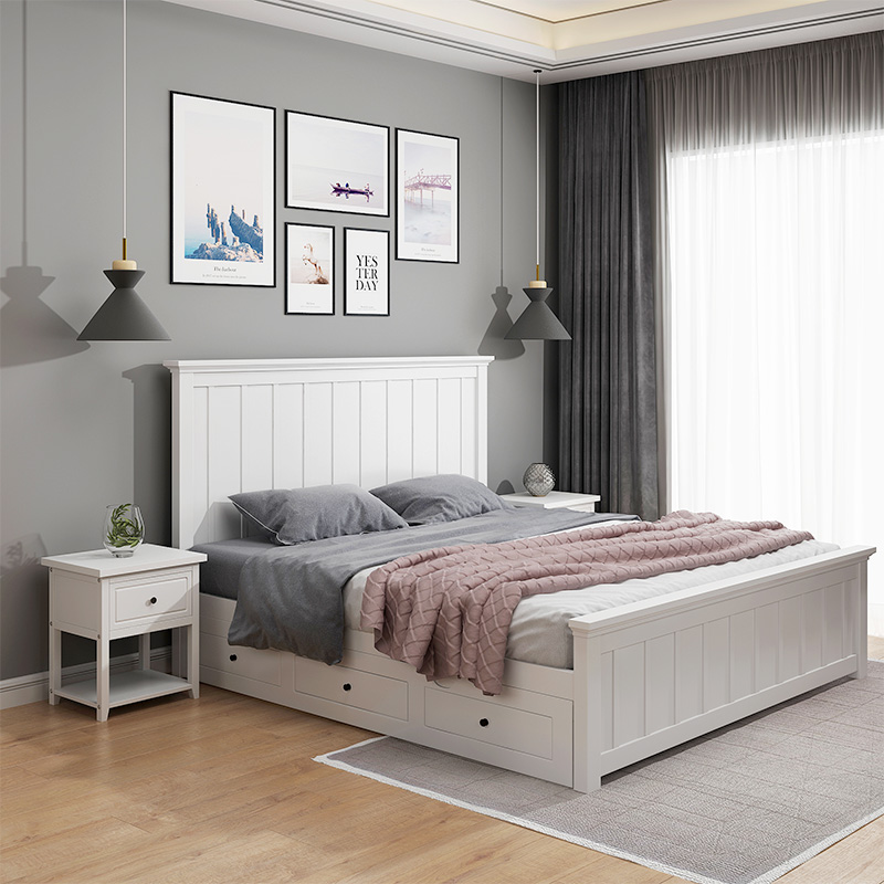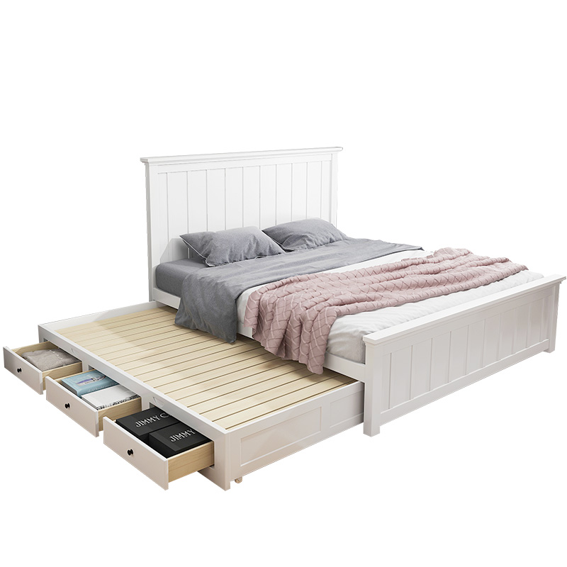 Solid wood bed 1 8 m Double primary-secondary bed minimalist white drawing drawbed with drawer towing bed 1 5 m High case containing bed