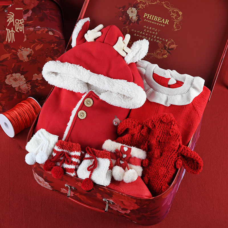 Newborn Supplies Baby Gift Boxes Baby Spring Summer Thicken Warm Even clothes Harvest China Wind suit