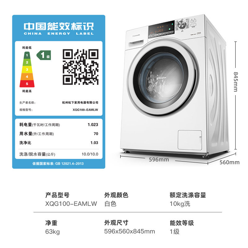 Panasonic Panasonic XQG100-EAMLW E1VUM 10KG frequency conversion fully automatic drum washing machine