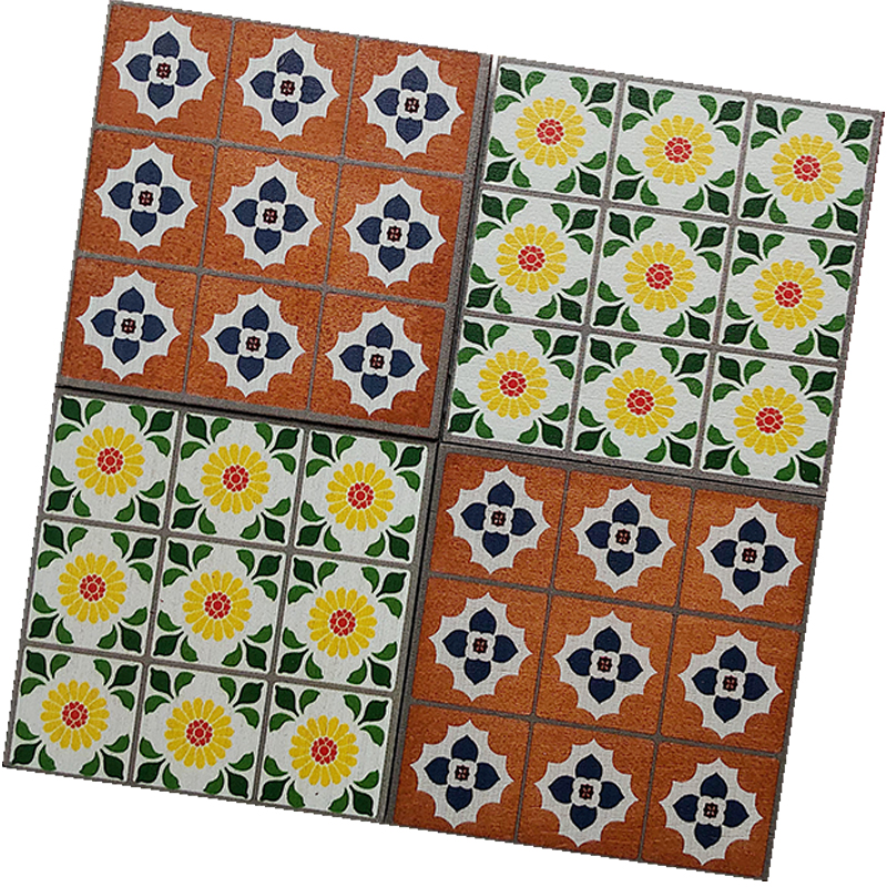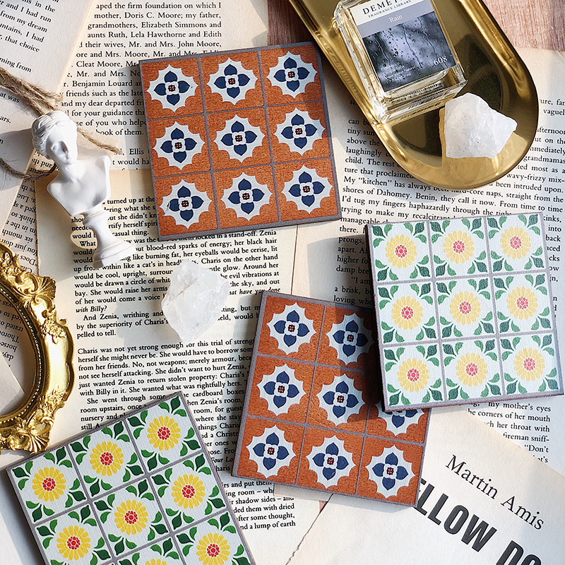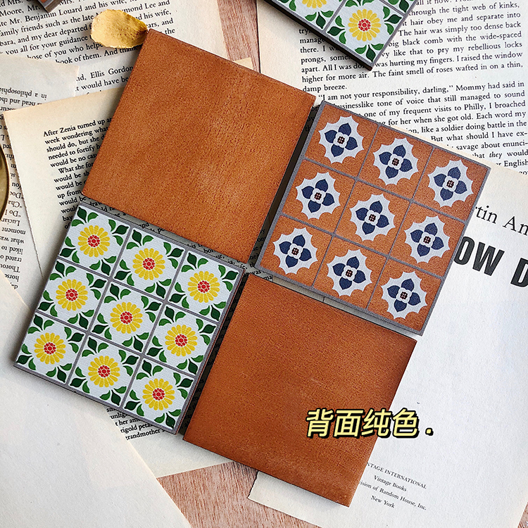 Retro tile pattern coaster Japanese retro creative wooden coaster insulation pad ins shooting background props