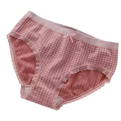 Japanese graphene Plaid underwear women cotton crotch antibacterial middle waist streak lace less ladies breathable underwear