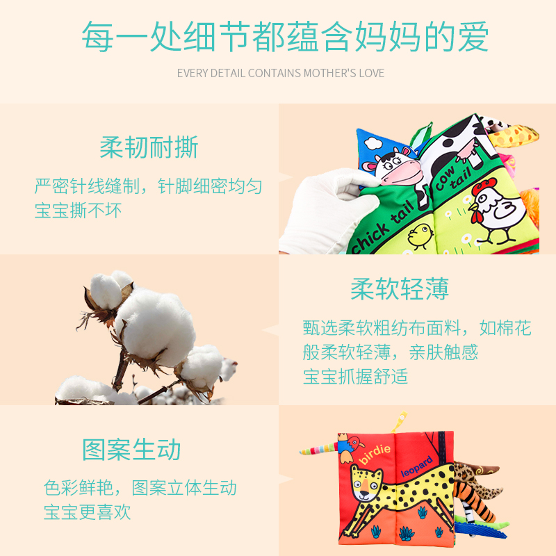 Baby stereo tail book early teaching baby tear can bite sound 0 - 3 year old children's puzzle toy
