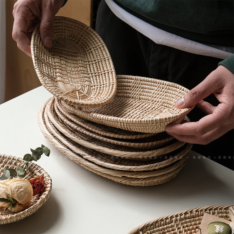 Shybara Township Wild Wind Rattan Bread Basket Indonesian White Vines Frame Handwoven Day Style Oval containing baskets