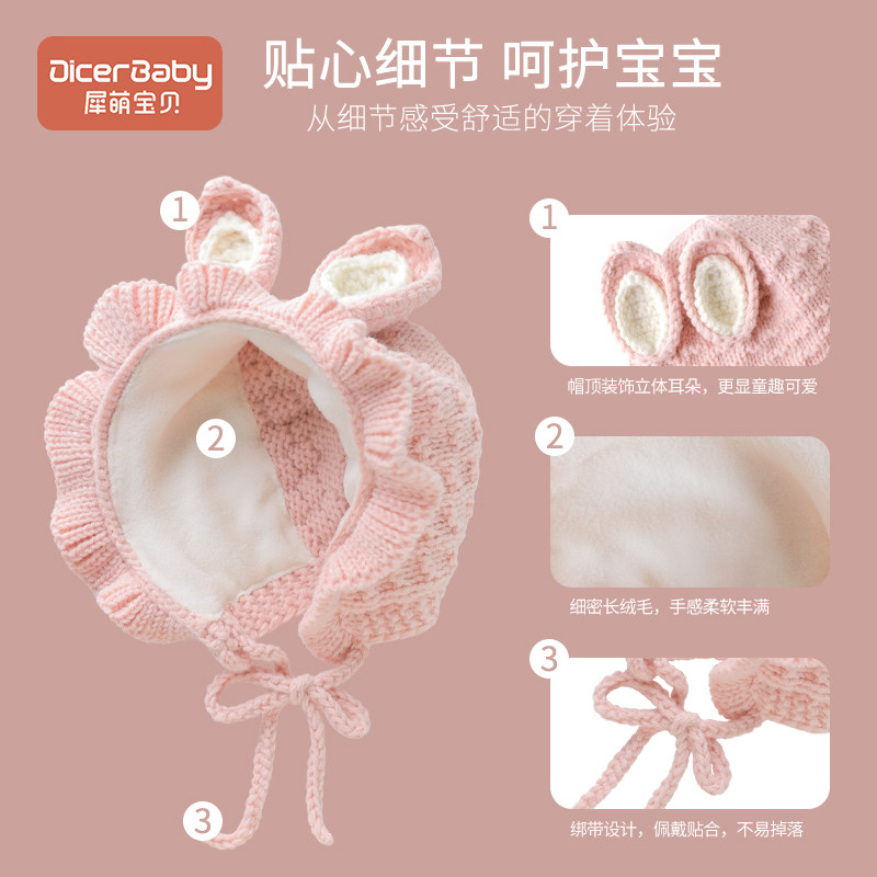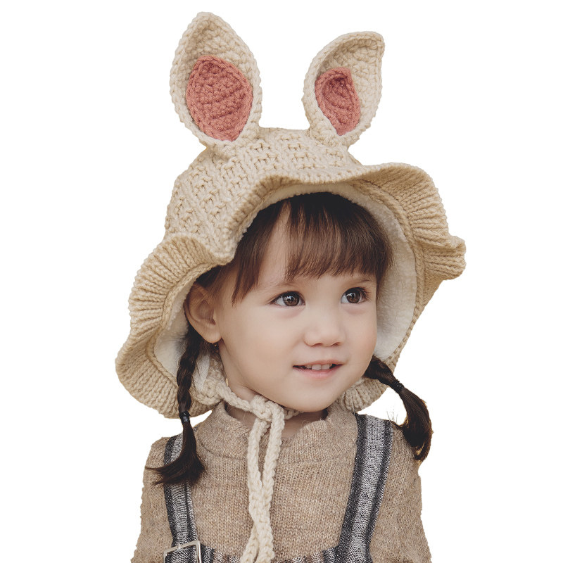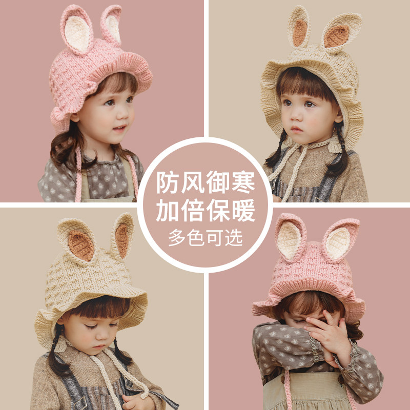 Baby hat winter Korean version of the Western style cute super cute handmade rabbit ears baby knitted ear protection hat children's wool hat