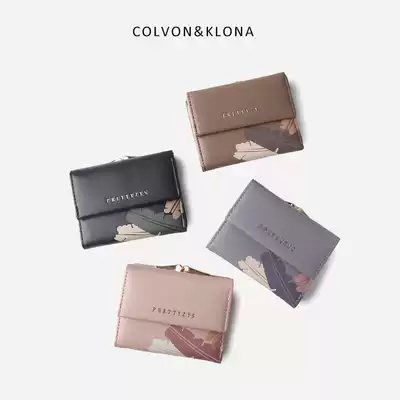 Colvon Klona new small fresh wallet female ins printing short top buckle three-fold student coin wallet tide