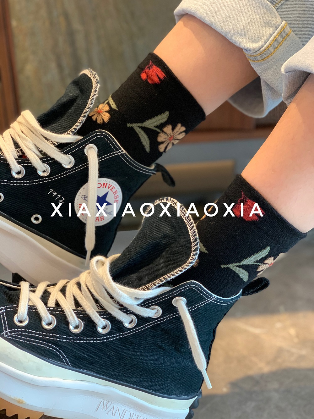 (full of five pairs) Korea Import Spot Woman Sox Medium Thickness Fashion elegant Elegant Flowers Cotton Socks