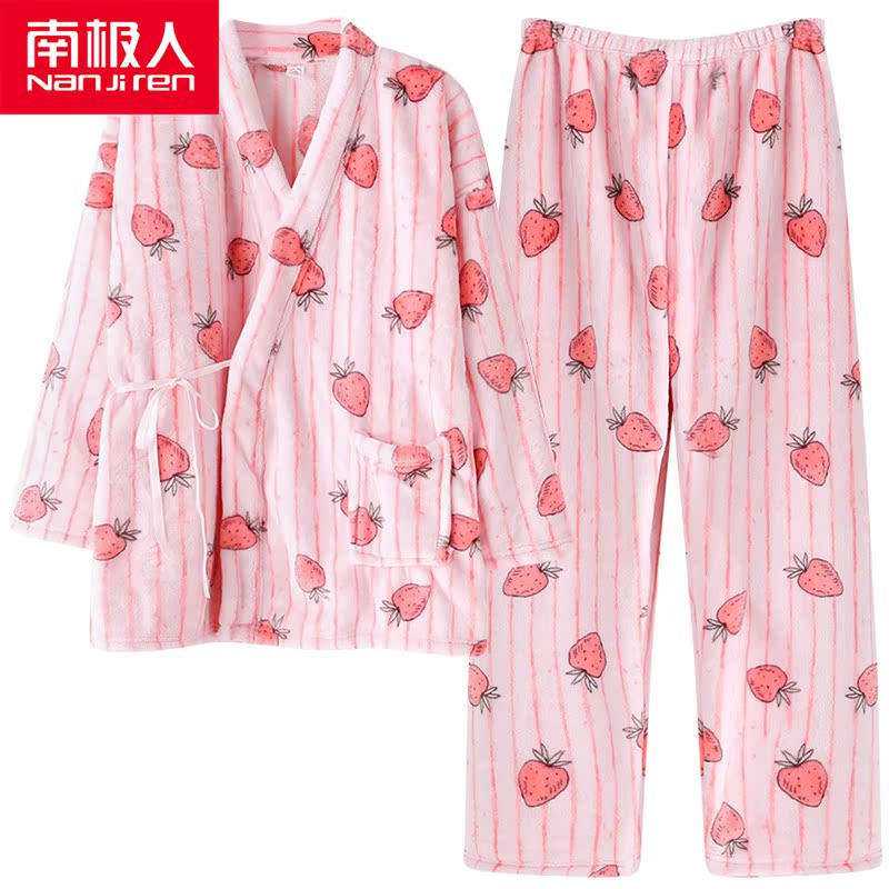 Day Style Winter Coral Suede Pyjamas Lady Thicken Warm Flannel Velvet And Long Sleeve Stay-at-home Dress Cute Suit