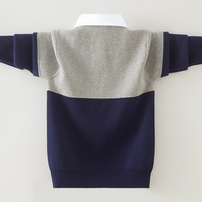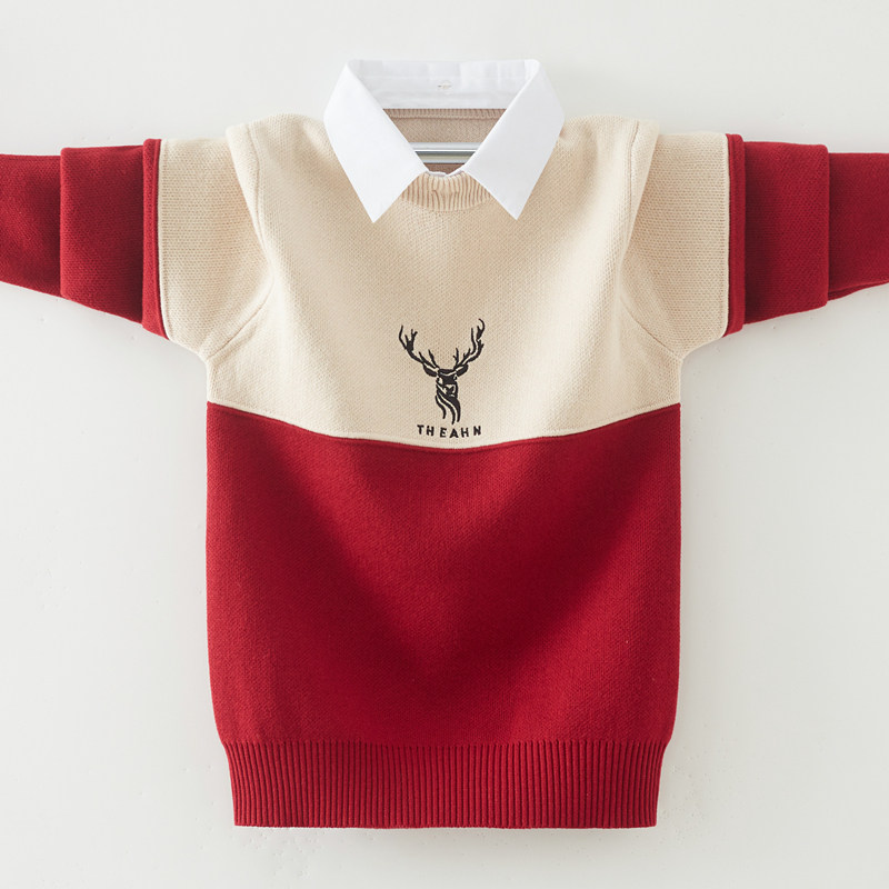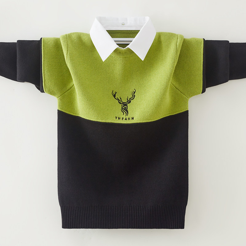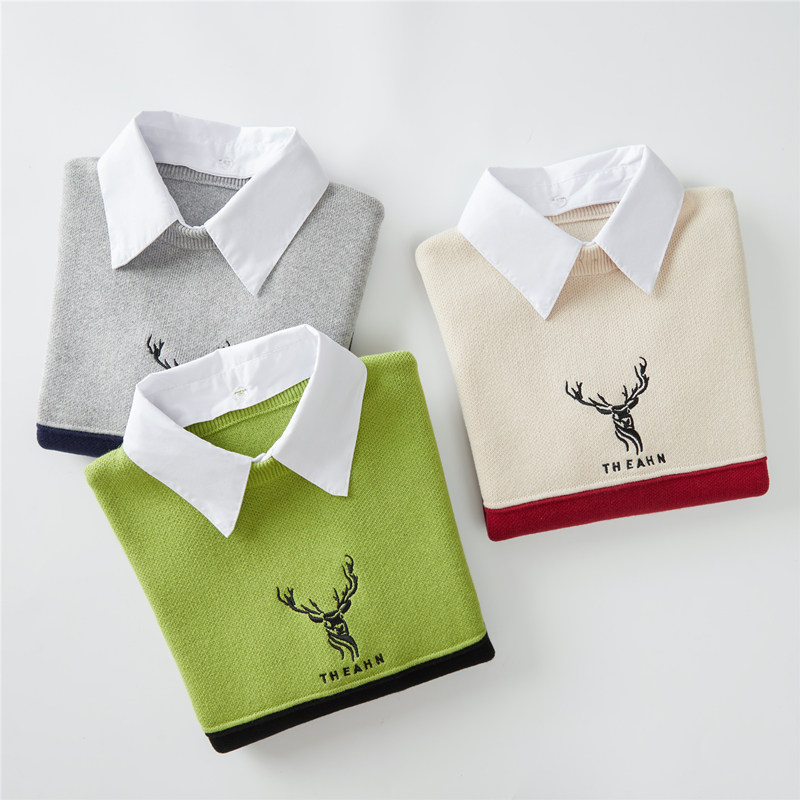 Shirt collar fake two boys sweater jacket head autumn and winter wave Korean version of children boy needle weaselweaters garnter thickened