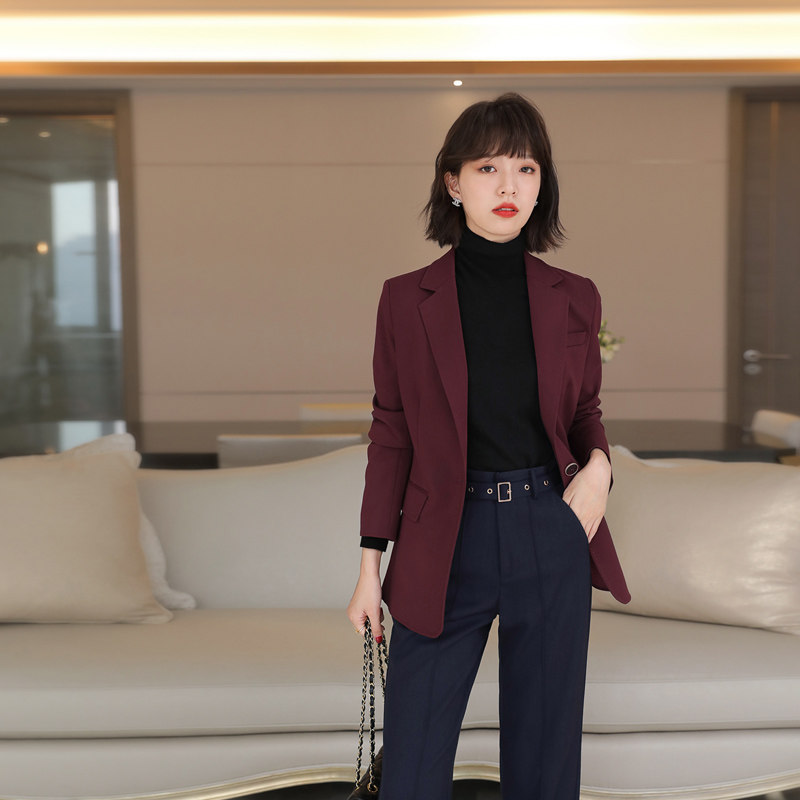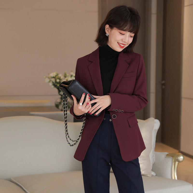 JOLIMENT burgundy casual blazer women's fall/winter 2020 new small man one button small suit