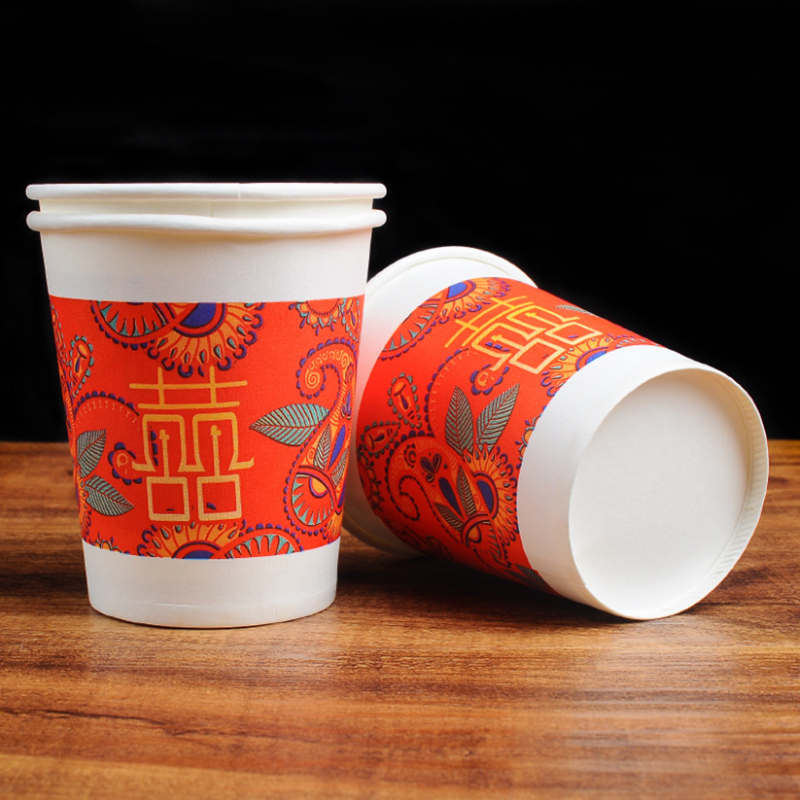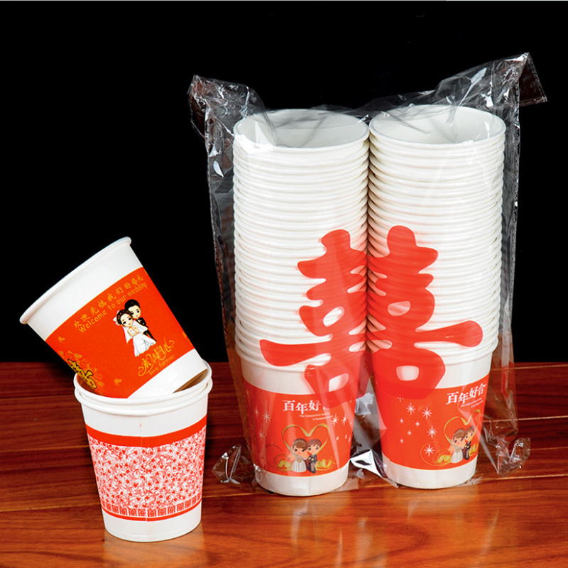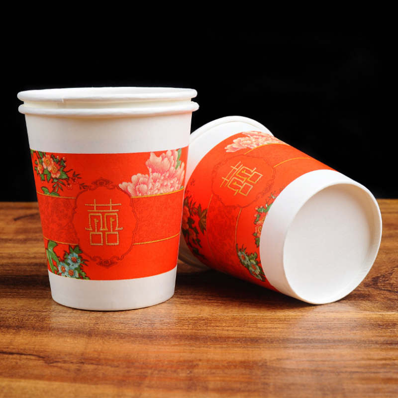 Tea red paper cup disposable cup tea cup household wedding wedding cup banquet paper cup 50 only