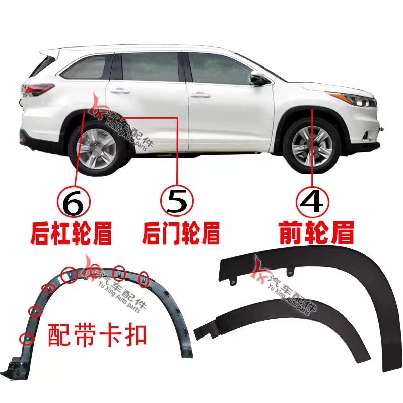 Left front impeller eyebrow No. 1 (professional factory), right front impeller eyebrow No. 4 (professional factory), left rear door wheel eyebrow No. 2 (professional factory), right rear door wheel eyebrow No. 5 (professional factory), left rear bar wheel eyebrow No. 3 (professional factory)