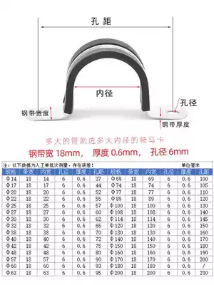 304 stainless steel strip riding horse card with rubber strip tube clip Tube clamp shock absorption U-shaped card tape rubber hoop plastic pad tube card