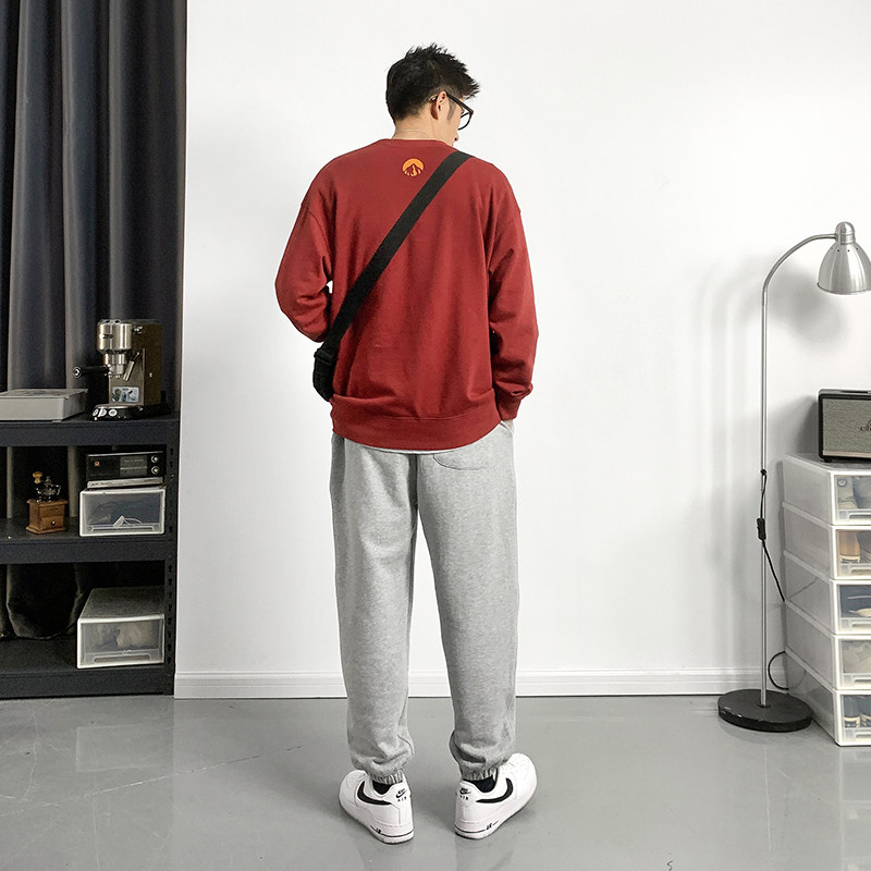 REEZ (shop owner wear) 2021 spring and autumn Japanese round neck thick cotton T men's loose pullover trendy all-match ins women - Taobao