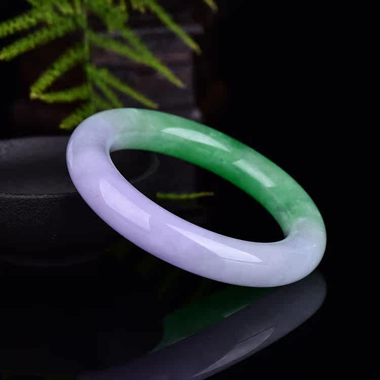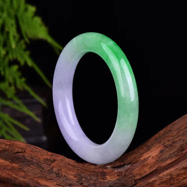 Fakaso Jewelry Live Natural Burmese Jade Jade Bracelet Yang Green Demon Purple Spring Color Round Bar Gold Ring Mouth Jewelry