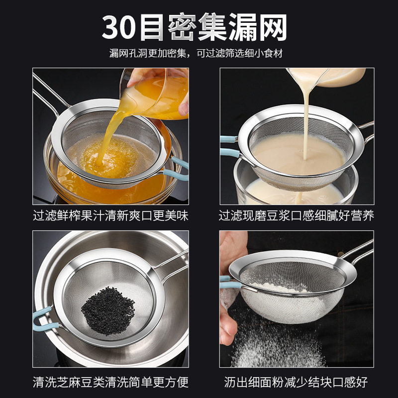 Flour sieve 60 mesh 304 stainless steel sieve powder sugar fine filter hand-held noodle sieve home baking ultra-fine